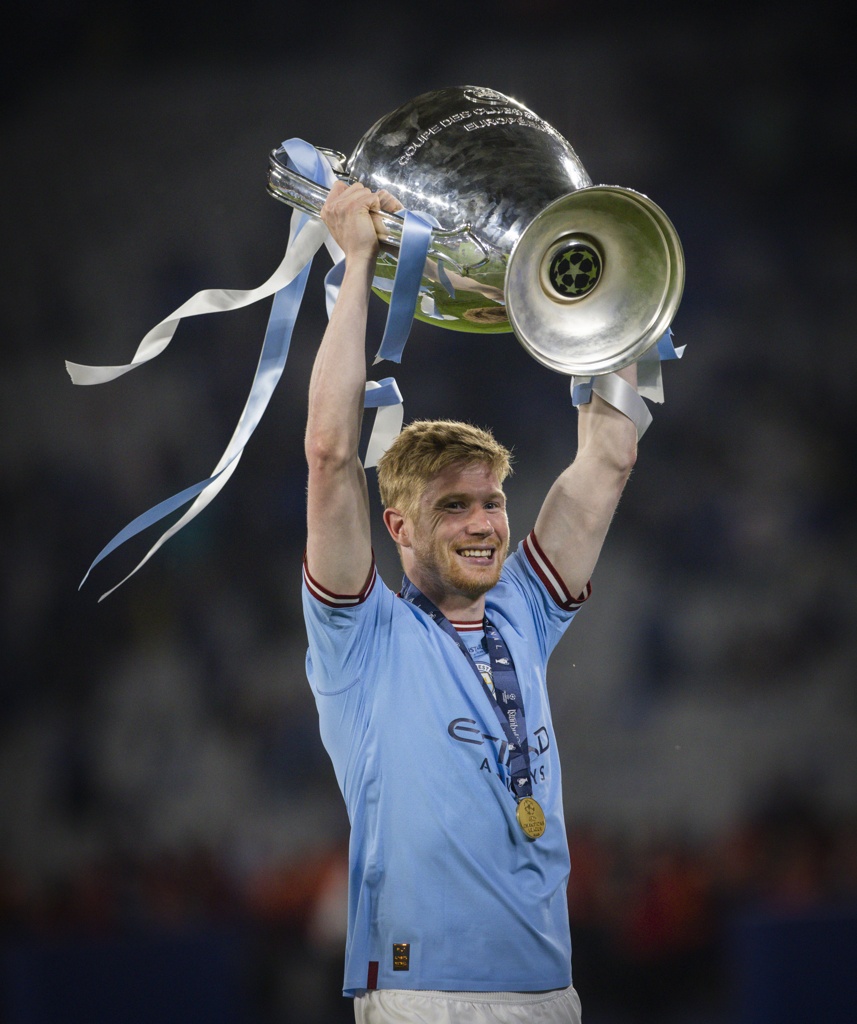 33岁的比利时中场德布劳内,2015年夏窗从沃尔夫斯堡加盟曼城,至今已经为曼城效力10年,出战413场比赛,贡献106球174助,随队取得6次英超冠军、1次欧冠冠军、1次世俱杯冠军、2次足总杯冠军、5次联赛杯冠军、3次社区盾冠军、1次欧超杯冠军。